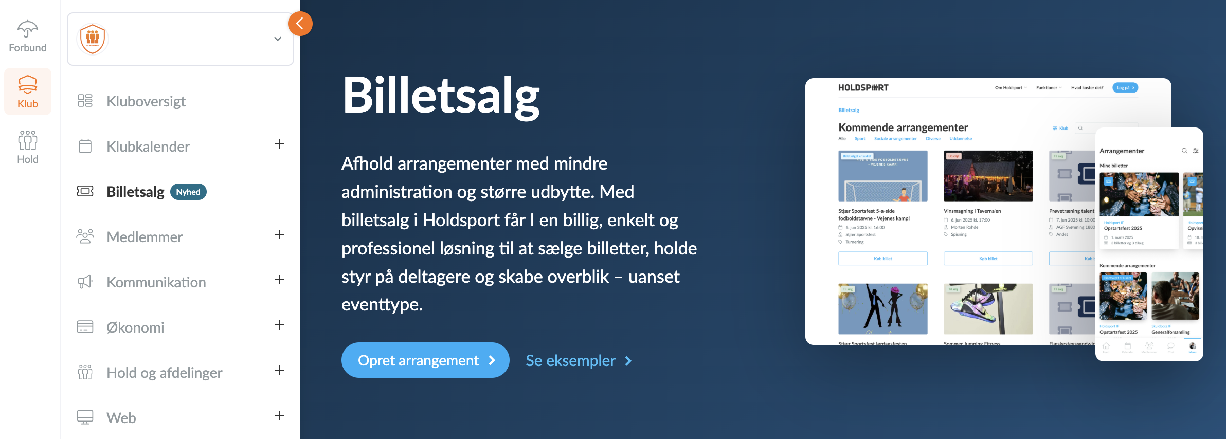 Når det er aktiveret, vil dit arrangement være synligt i dine medlemmers kalender på Holdsport og eventuelt også på Holdsports offentlige billetsalgsside, hvilket gør det lettere for folk at opdage og købe billetter.