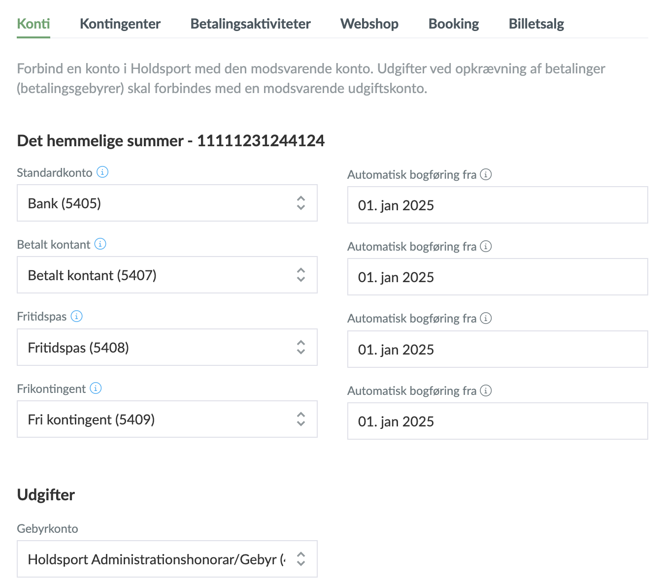 BEMÆRK: Du behøver kun at udfylde de faner, du rent faktisk bruger. Hvis du ikke benytter en bestemt funktion i Holdsport, kan du lade de tilsvarende faner stå tomme.