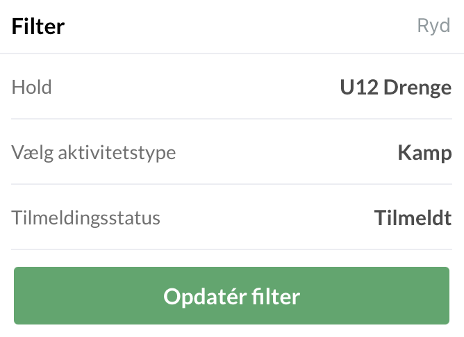 - Mulighed for at sortere/filtrere sin egen kalender på en specifik aktivitetstype
