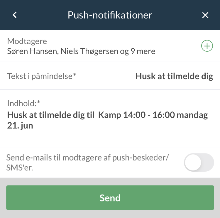 - For at modtage push-besked skal man have downloadet Holdsport-appen
