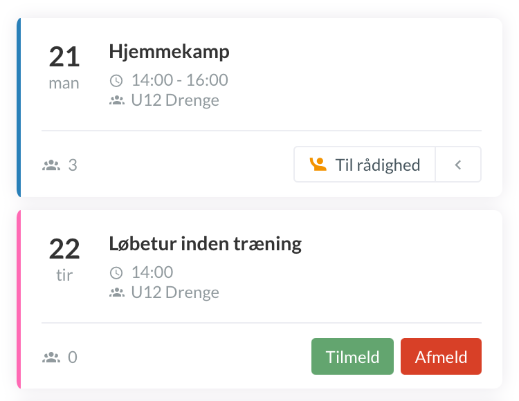 På din Holdsport-app vises en medlemsaktivitet med pink farve.