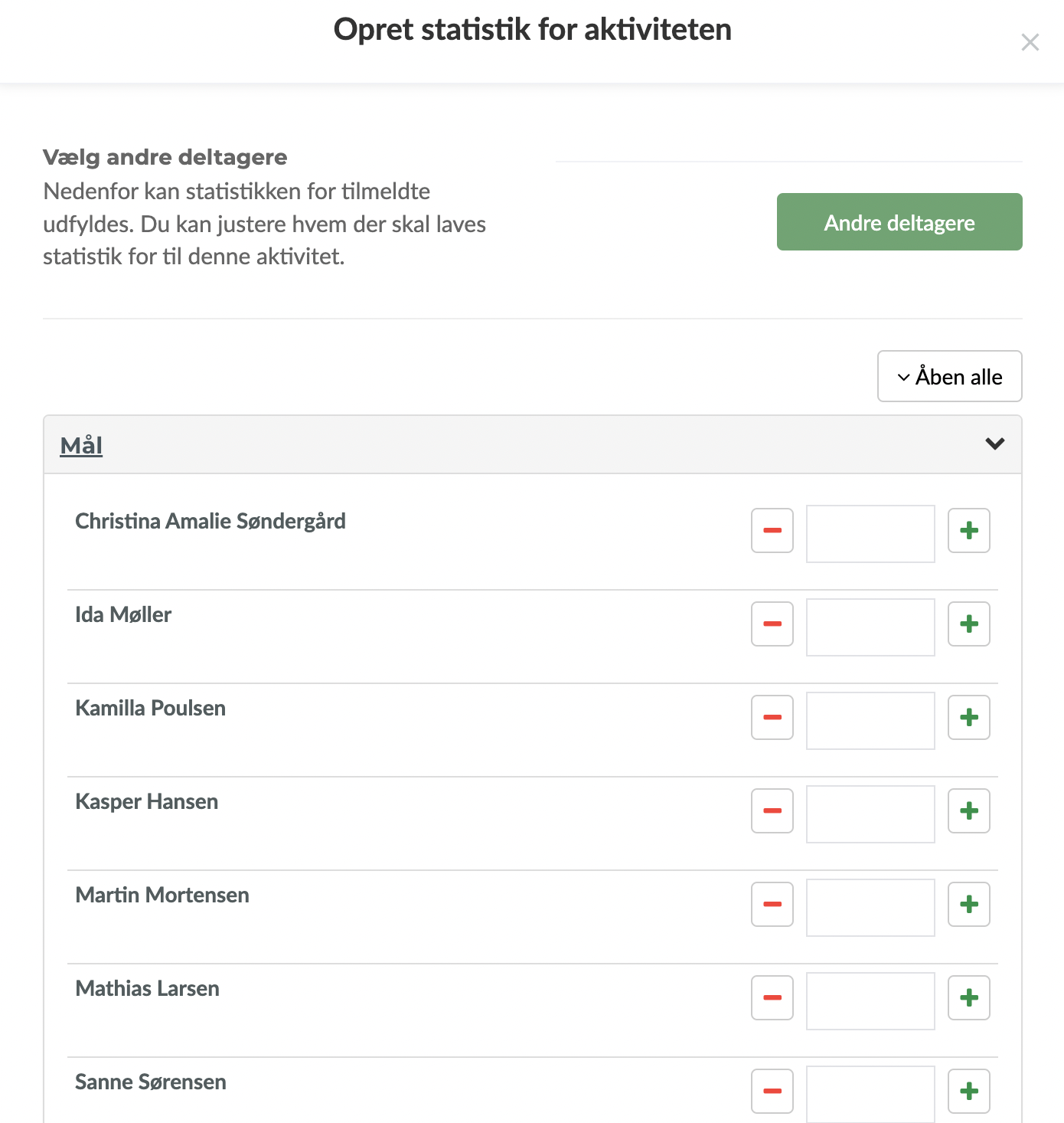 - Som træner er du ansvarlig for at opdatere statistik på baggrund af aktiviteter